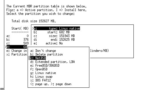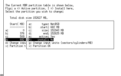 d: (四番目) が a (activ) I (Install) NetBSD に変更されました