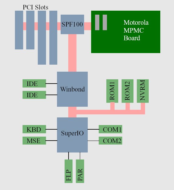 , 二つの IDE、Keyboard, Mouse, Floppy, Parallel, Communication Serial Line が接続可能です。また図で SPF100 と書いてあるのは